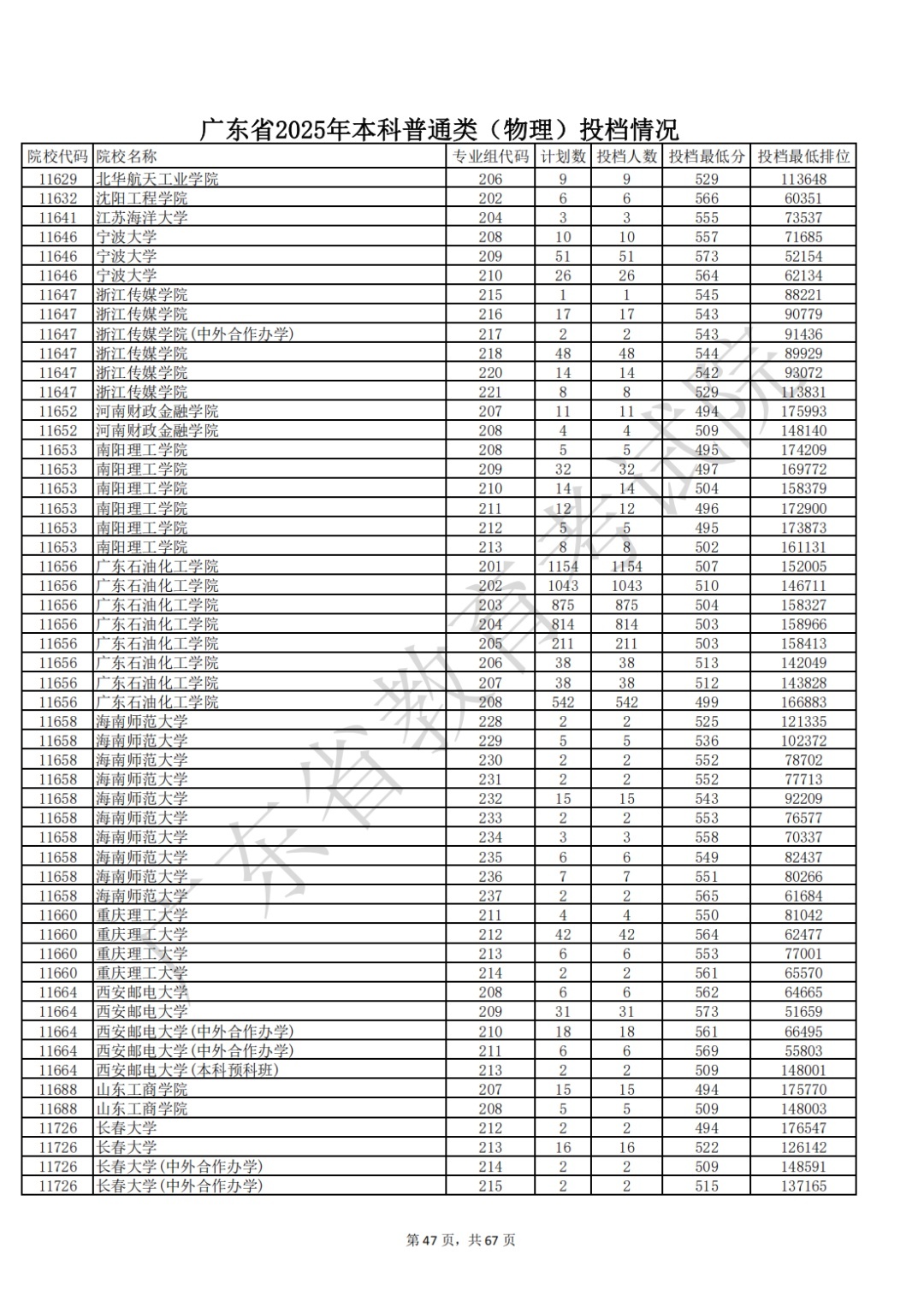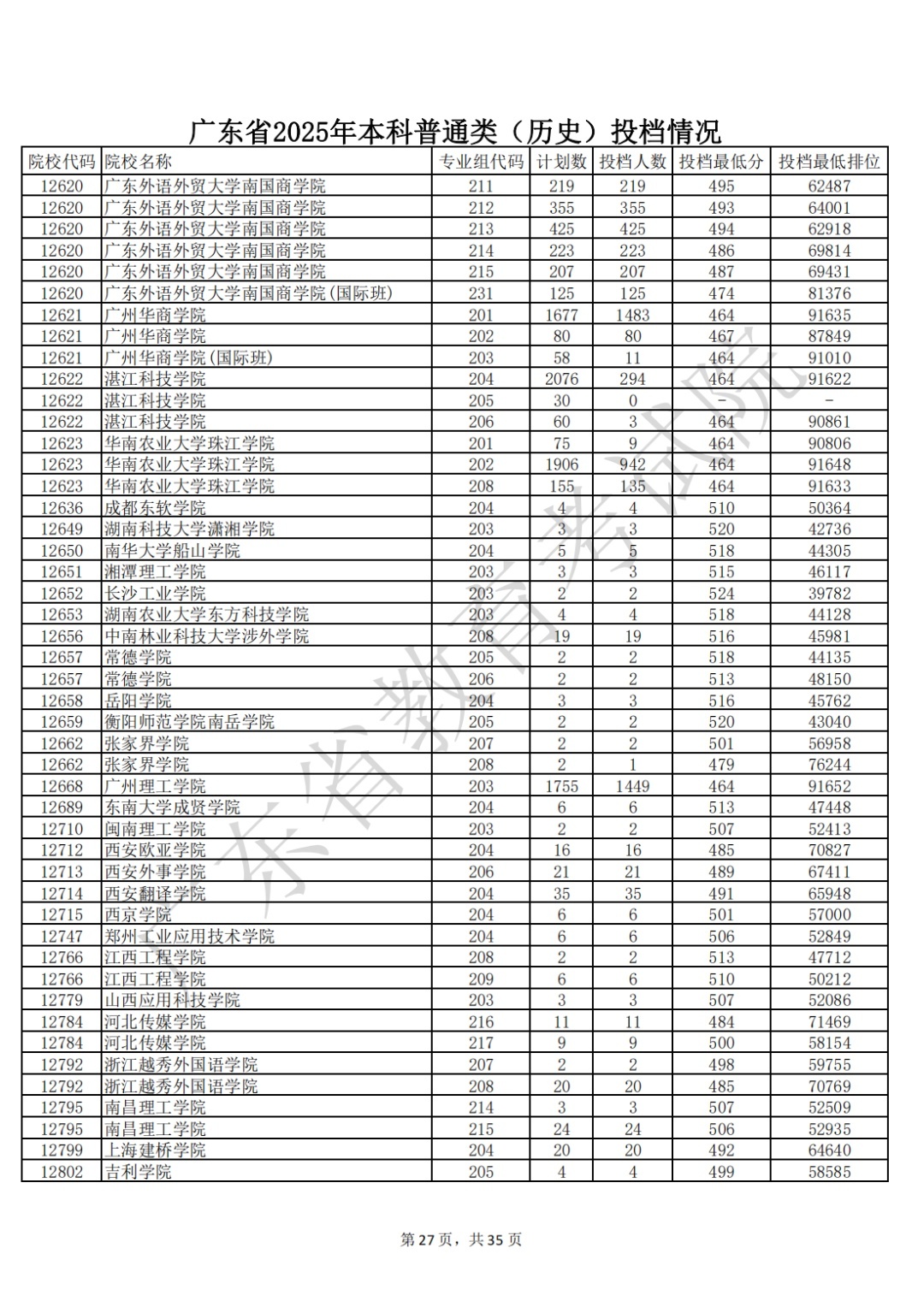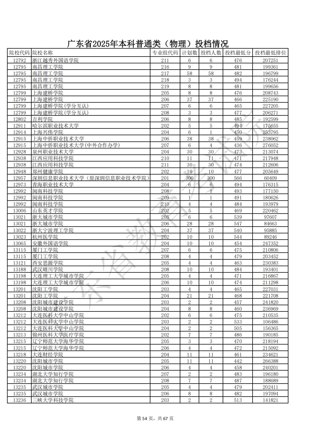 今年,高水平大学在粤招生生源充足,北京大学、南开大学、上海交通大学、中国科学技术大学、西安交通大学等高校增加招生计划。普通本科批次大部分院校均一次投档即满档,但部分招生量大的民办院校、收费较高的院校专业组和有特殊要求的院校专业仍存在缺额计划。
