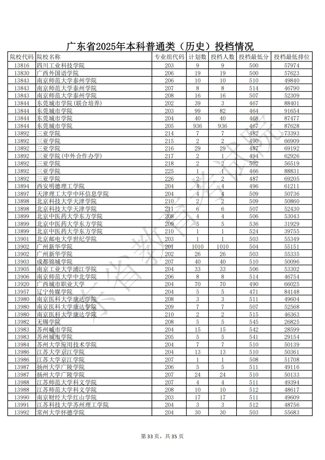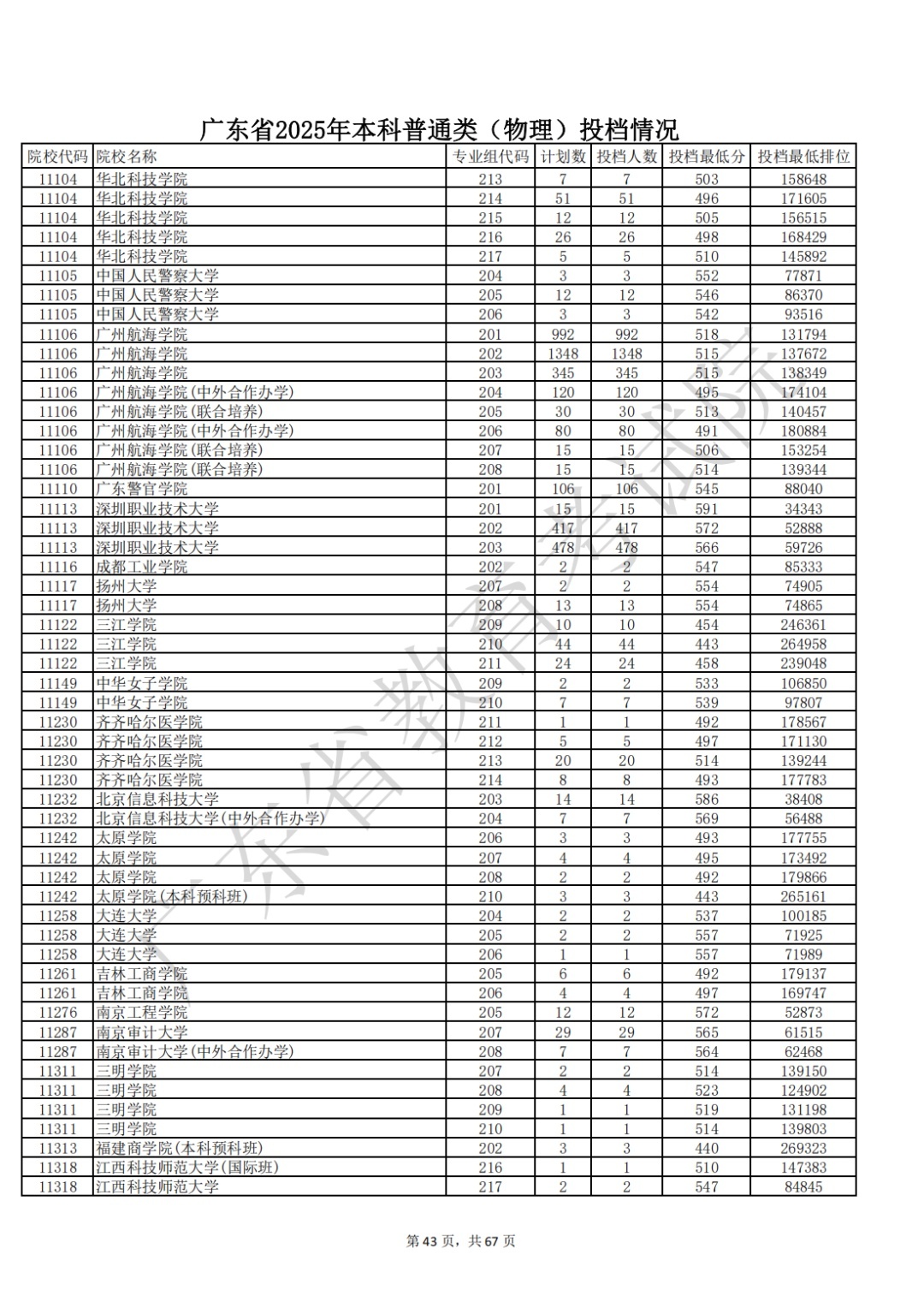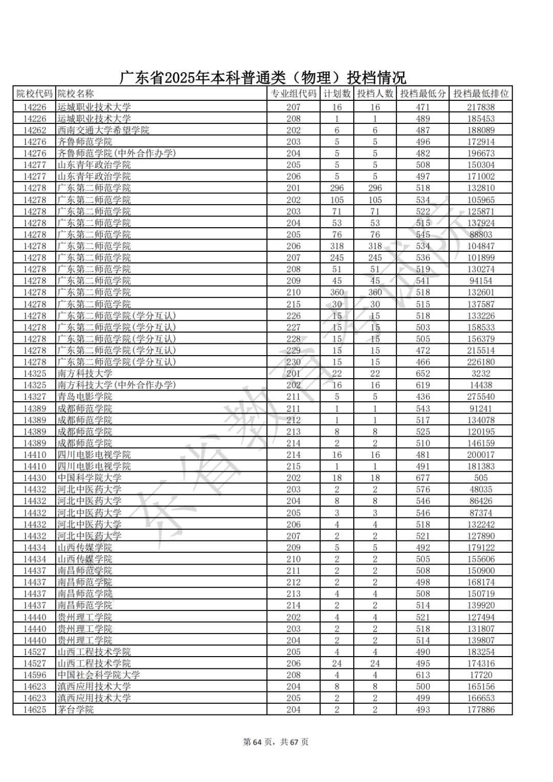 今年,高水平大学在粤招生生源充足,北京大学、南开大学、上海交通大学、中国科学技术大学、西安交通大学等高校增加招生计划。普通本科批次大部分院校均一次投档即满档,但部分招生量大的民办院校、收费较高的院校专业组和有特殊要求的院校专业仍存在缺额计划。