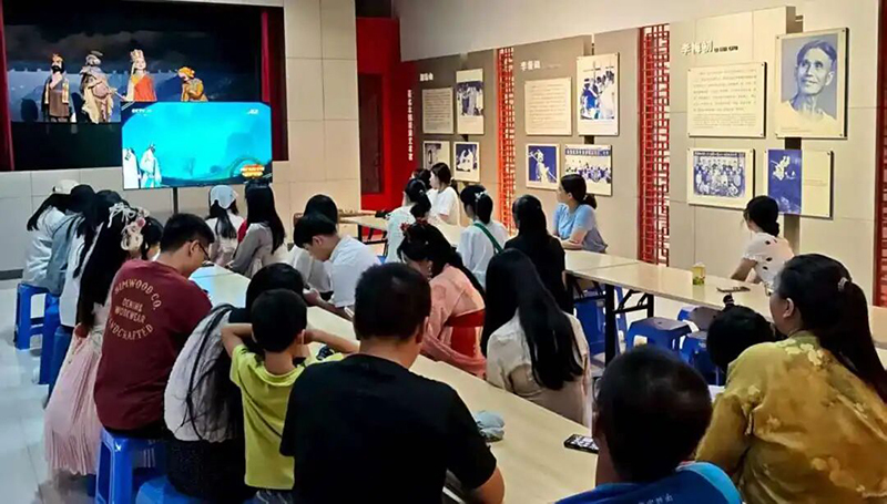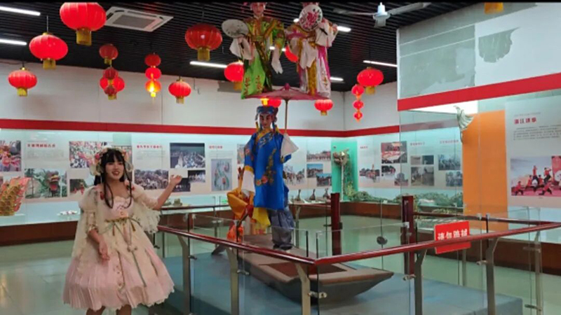 粤剧的余韵还未散去,当主持人讲到展厅中的吴川飘色与“白蛇传”之间有着奇妙的缘分后,大家跟着讲解员一同探寻这项被誉为“东方隐蔽艺术”的非遗瑰宝,观赏了以“游湖借伞”为主题的飘色作品。