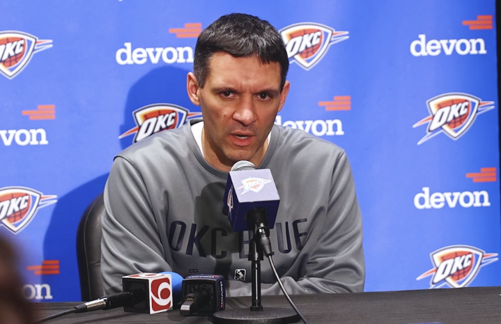 记者:贾里德-麦凯恩今晚砍下了全场最高的26分,你能谈谈他来到俄克拉荷马城后的成长吗?