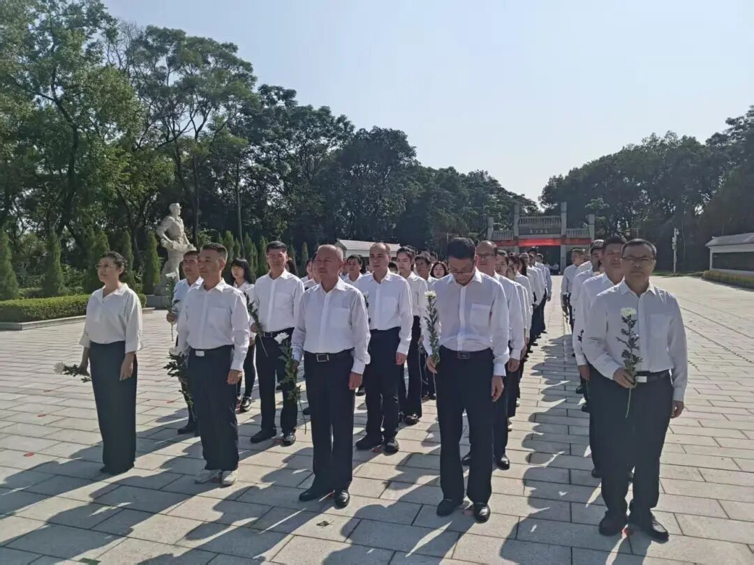 默哀毕,全体人员依次敬献上洁白的菊花。随后,缓步绕行烈士纪念碑,瞻仰浮雕,追忆革命先烈的丰功伟绩,表达对革命先烈的崇高敬意,进一步感悟在肩使命,坚定理想信念。