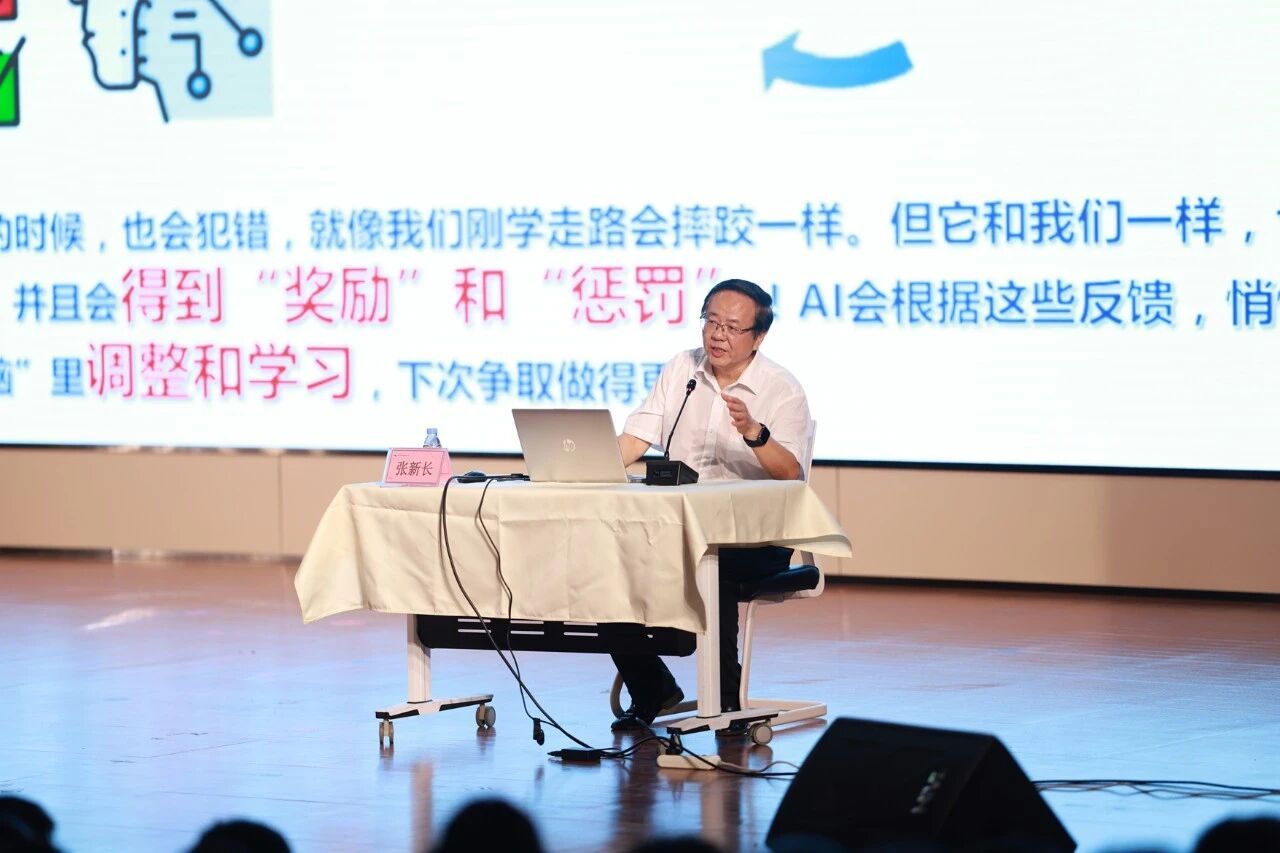 张院士用渊博的学识和风趣的语言,为孩子们描绘了人工智能的宏伟蓝图。他不仅讲述了AI的前沿知识,更引导同学们思考如何成为未来的创造者,主动学习、积极探索,真正成为科技的“驾驭者”。会场内,孩子们眼神专注,掌声阵阵,一场报告,点燃无数孩子的科学梦。