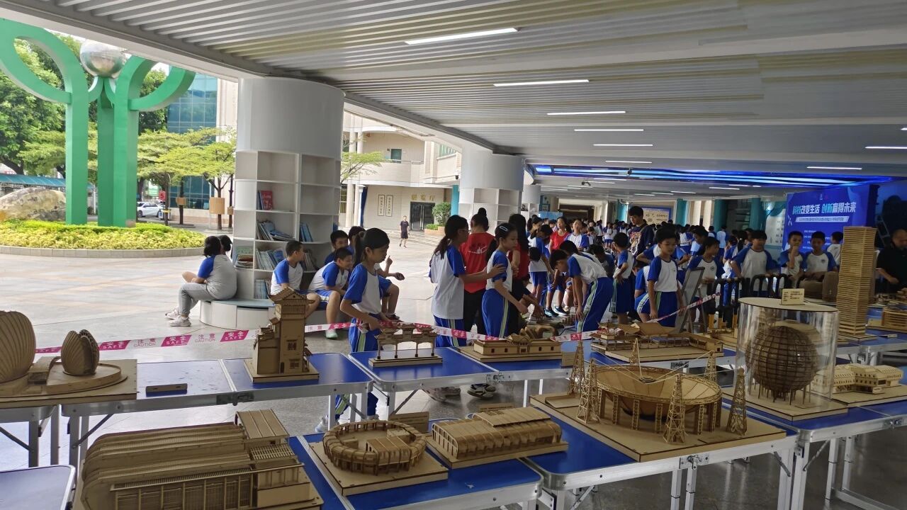 在创客模型展区: “中国天眼”“火星车”空警500”等20件大国重器模型震撼亮相。学生们驻足观看,认真聆听讲解,民族自豪感和科学探索欲油然而生。