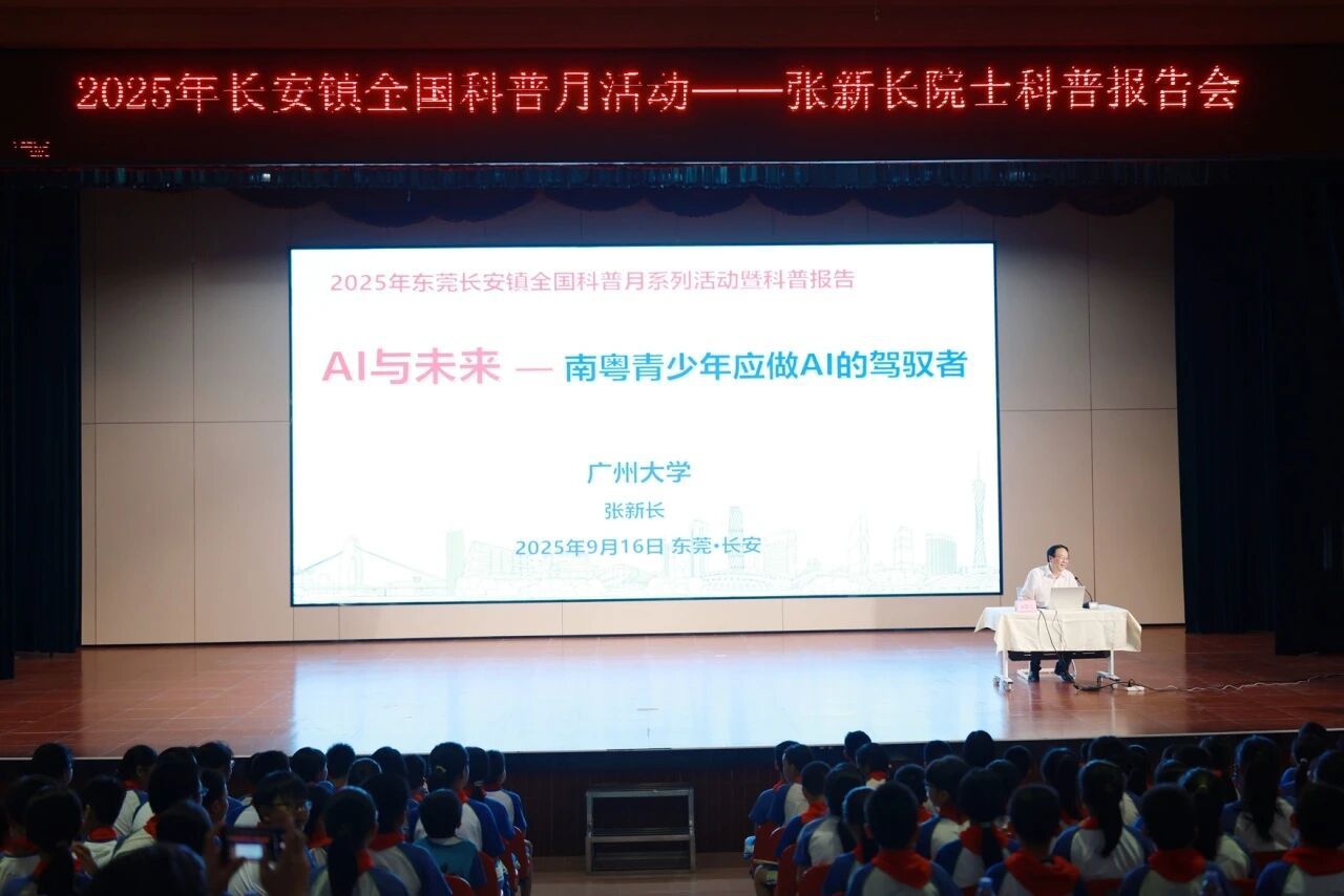 16日下午,在金沙小学,来自国际欧亚科学院院士、俄罗斯工程院外籍院士张新长应邀为该校五、六年级学生带来题为《AI与未来:南粤青少年应做AI的驾驭者》的精彩分享。